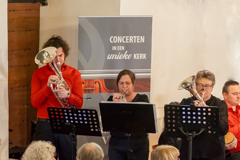 Andermaal had Sietse een programma uitgezocht dat geschikt was voor onze akoestische kerk: niet al te luid graag. Het is niet de bedoeling de mensen de kerk uit te blazen, dirigent en orkest waren zich daar zeer van bewust. Individueel blazen de orkestleden perfect, maar er moet een balans zijn. Bij de repetities is het dus voor de dirigent om aan te geven: jij moet wat zachter en jij moet wat harder. Het resultaat was er weer naar.