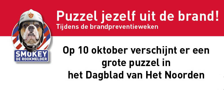 De jaarlijkse brandpreventieweken staan weer voor de deur. Dit jaar staat de rookmelder centraal. Om aandacht te vragen voor dit onderwerp is er een grote rebus/puzzel gemaakt. Deze puzzel komt in het Dagblad van Het Noorden van 10 oktober te staan. De puzzel is vanaf 10 oktober ook te downloaden op www.dvhn.nl