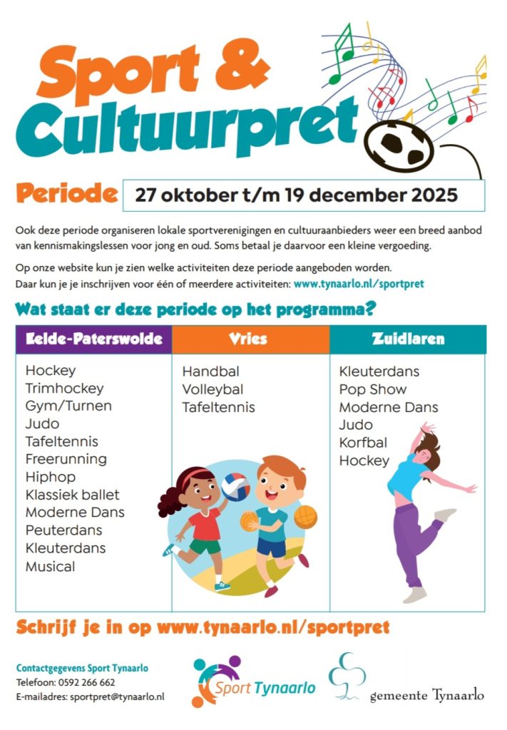 Aanmelden voor een leuke en sportieve activiteit kan via: www.tynaarlo.nl/sportpret