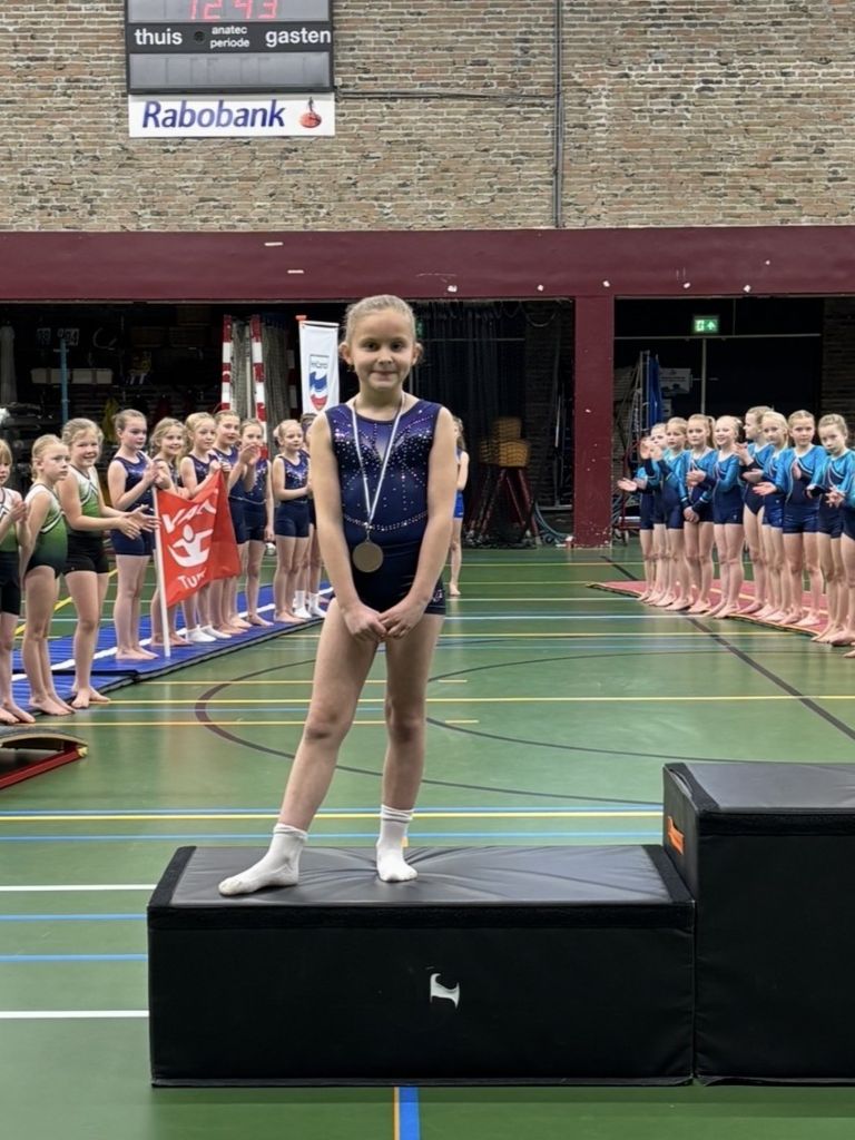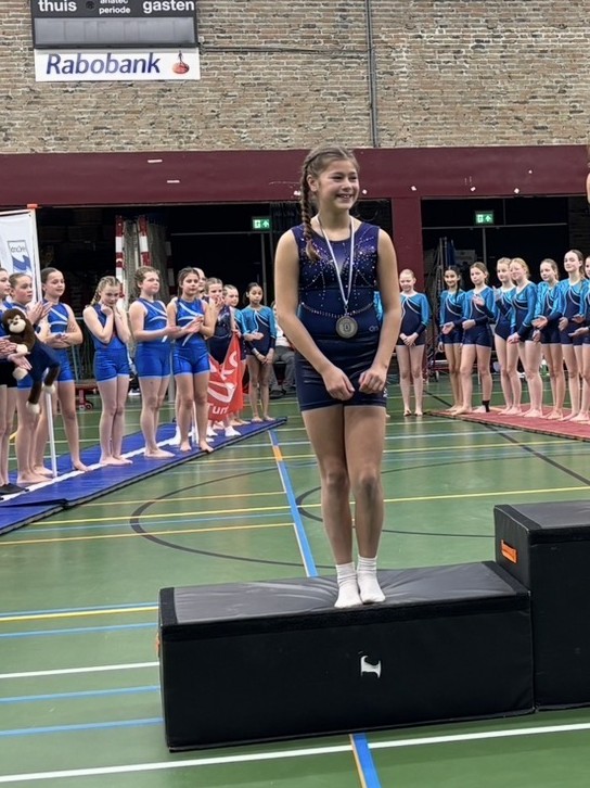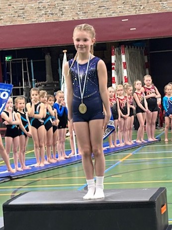 Na op alle onderdelen; balk, brug, sprong en vloer hun oefening te hebben geturnd, was de zilveren medaille voor Elize IJbema. Na de middag mochten de 9-jarige meiden hun wedstrijden turnen. Ze hadden er veel zin in, maar het was ook wel heel spannend. Rond 15.00 uur mochten de meiden van 10 jaar en ouder hun wedstrijd turnen. Er werd goed geturnd en dit werd met 2 medailles beloond. Annelie Dik mocht bij de 10-jarigen de zilveren medaille in ontvangst nemen. Bij de 11-jarigen was de bronzen medaille voor Daphne IJbema.