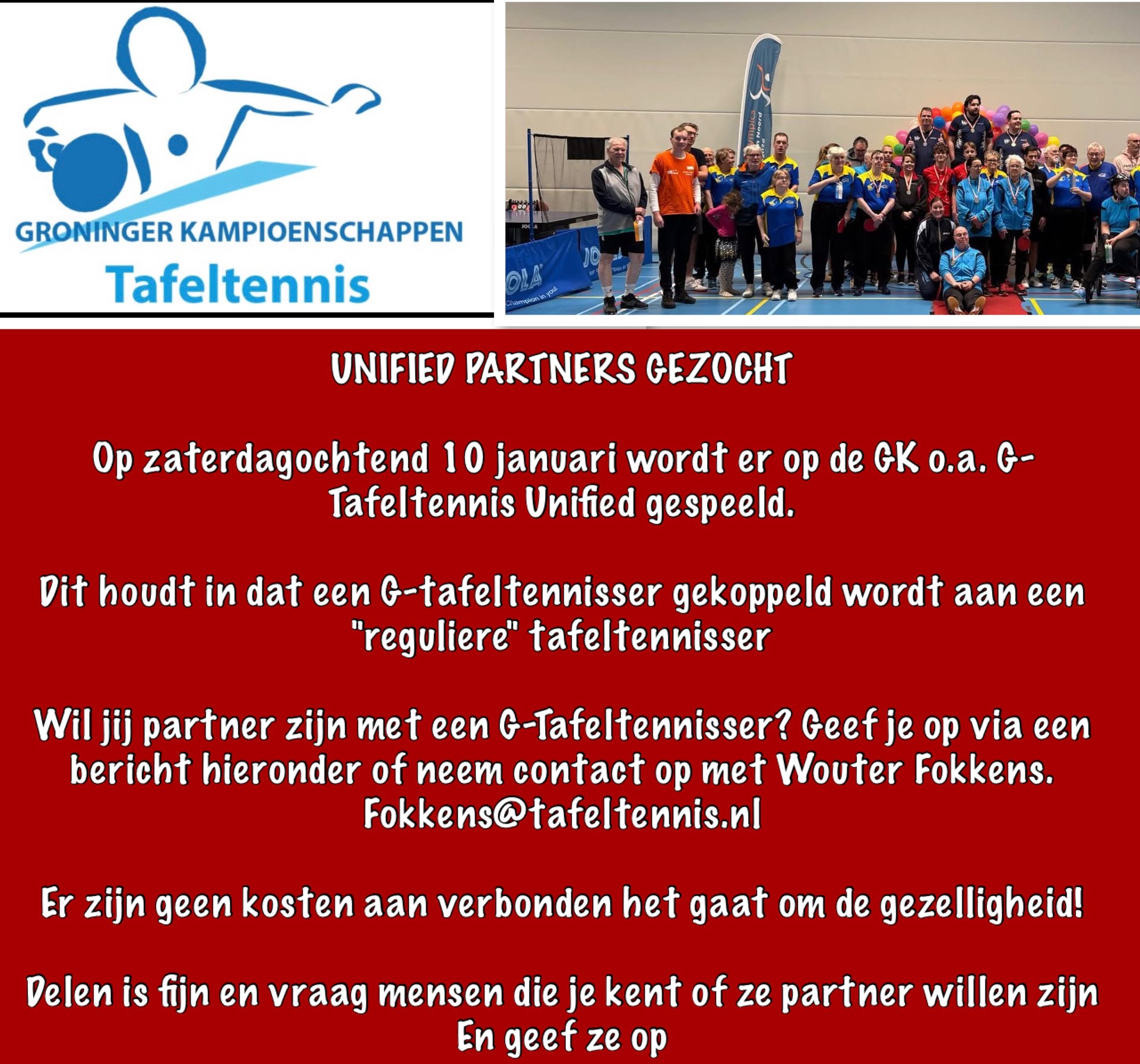 Vanuit tafeltennisvereniging Vries is deze oproep gekomen. Reacties graag mailen naar het mailadres in de oproep.