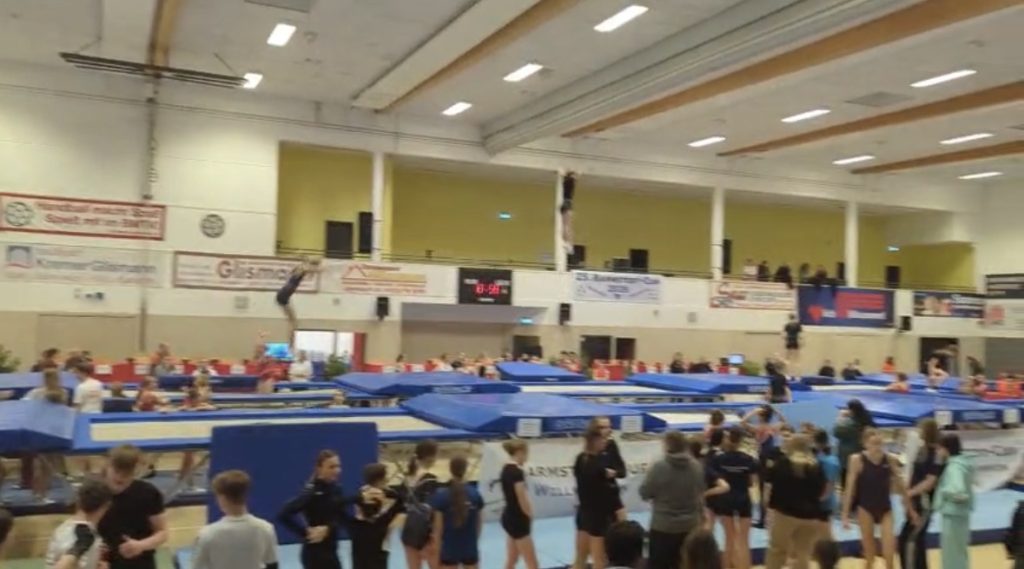 Afgelopen zaterdag reisden 2 springers, Roza Sloot en Kristel Geersing van VAKO af naar Barmstedt in Duitsland voor hun eerste internationale wedstrijd. Aangekomen, snel alles uitladen, omkleden en op naar de training. Ze konden daar trampolines testen waarop ze de volgende dag hun wedstrijd sprongen, dit vonden ze heel fijn om te doen. Na het trainen stonden er overheerlijke pizza’s voor ons klaar. Nog even relaxen en dan het bed in, om de volgende ochtend fris op de wedstrijd te verschijnen.