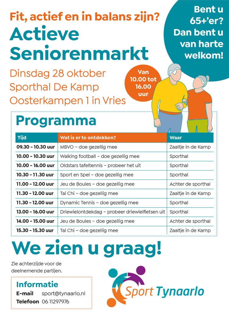 Actieve Seniorenmarkt op dinsdag 28 oktober Sporthal De Kamp
