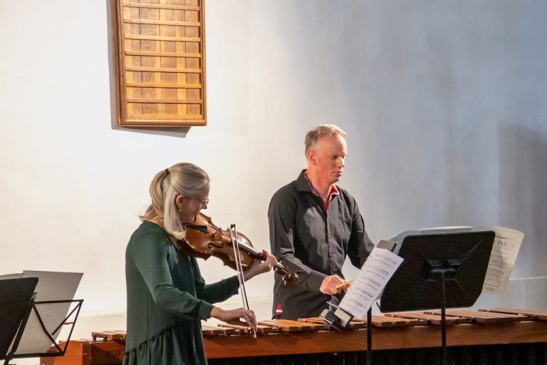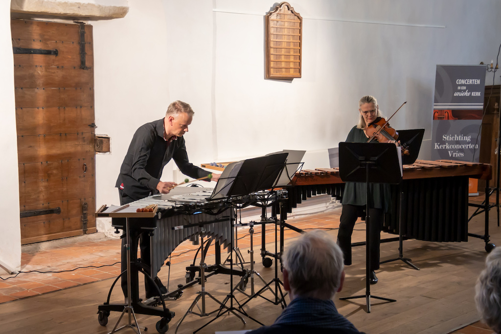Opnieuw, op zondagmiddag 10 oktober jongstleden, een bijzonder concert in de nieuwe serie, georganiseerd Kerkconcerten Vries. Bijzonder door de ongewone combinatie van instrumenten, marimba, vibrafoon en slagwerk in duet met altviool. Daarbij was dit concert bovendien het debuut van het Alburger Duo, een van de kamermuziek ensembles van het Noord Nederlands Orkest, waarvan er in de loop van de jaren al vele in de Bonifatiuskekr hebben opgetreden. De naam van het duo verwijst naar de Duits-Amerikaanse eigentijdse componist Mark Alburger van wie twee fraaie stukken werden gespeeld. Zoals eigenlijk altijd in de Bonifatiuskerk vulden de klanken de ruimte prachtig. Het zeer afwisselende programma, van barok over romantiek naar modern, gaf beide musici ruim de gelegenheid hun virtuositeit aan het publiek te tonen, in hun samenspel zowel als in de solo gespeelde stukken. Katharina Saerberg speelde een aantal delen uit de Vierde Solosuite voor cello van Johan Sebastian Bach. In de bewerking voor altviool kwam de grote emotionele lading van dit werk volledig tot zijn recht. Misschien het meest verrassend was een zeer krachtige, spectaculaire solo door de slagwerker Menno Bosgra op de kleine trom: De Trein van D. Agostini. Ook deze vulde de hele kerk en kwam fluisterend tot stilstand.