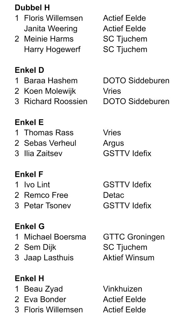 De organisatie baalde van de weersomstandigheden, maar kijkt tevreden terug op een sportieve dag en werkt aan een inhaalmoment voor de gemiste onderdelen. “We zijn blij dat er tóch getafeltennist kon worden,” aldus de organisatie.