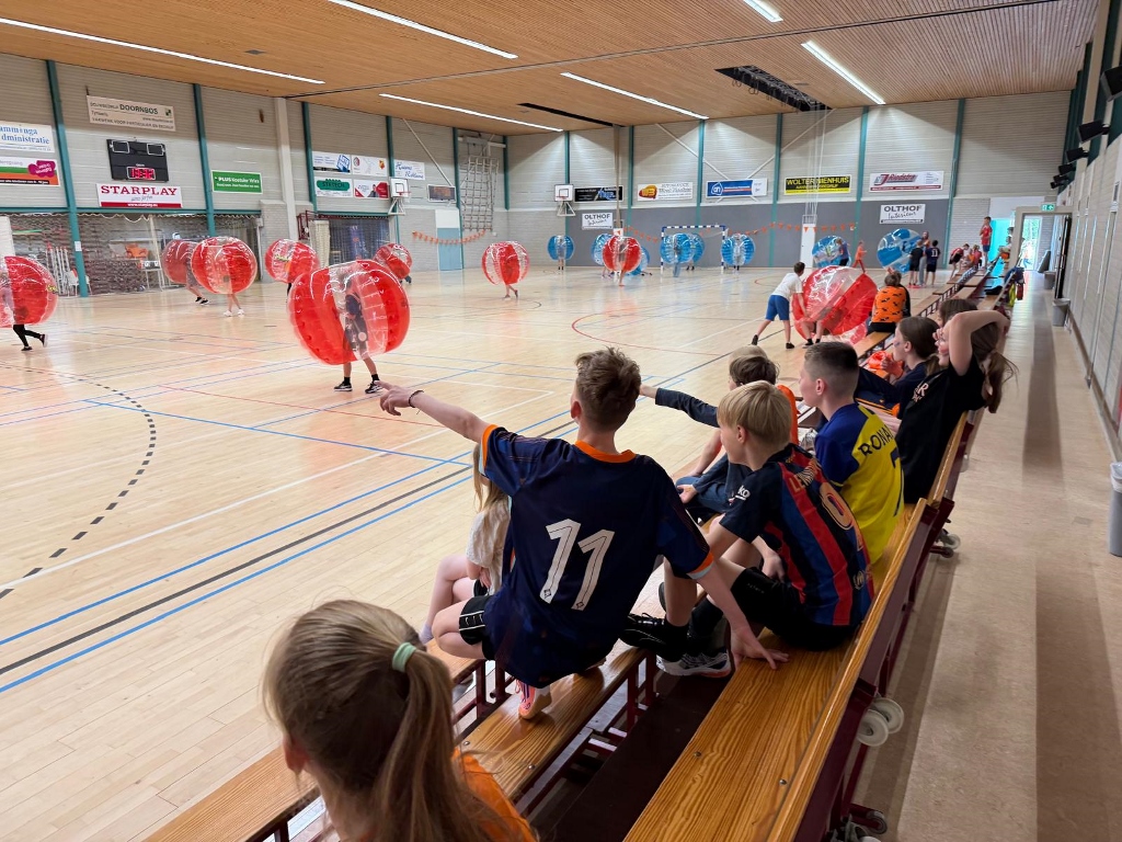 In de middag was het de beurt aan de bovenbouw. Zij zochten de uitdaging in en rond de Kamp op met bubbelvoetbal, een intensief Hyrox-circuit en skaten en steppen. Een bijzonder onderdeel van het programma was het gebruik van de onlangs geopende jeu de boulesbaan in Vries.