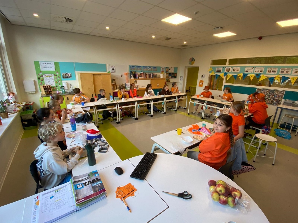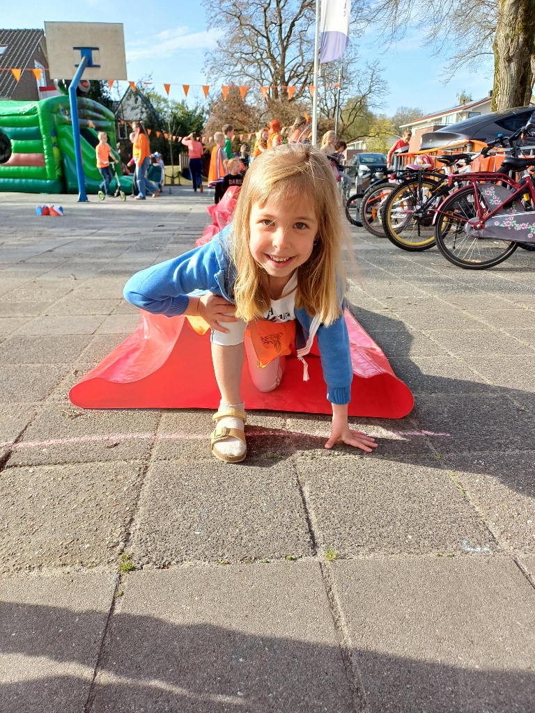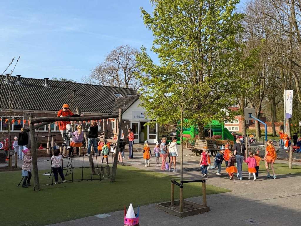 De dag begon met de gezamenlijke Koningsspelendans, het landelijke dansmoment dat hoort bij het officiële Koningsspelenlied. De hele school kwam naar buiten om samen te bewegen. Het plein veranderde in een groot oranje geheel waarin jong en oud zichtbaar genoten van dit gezamenlijke startmoment.