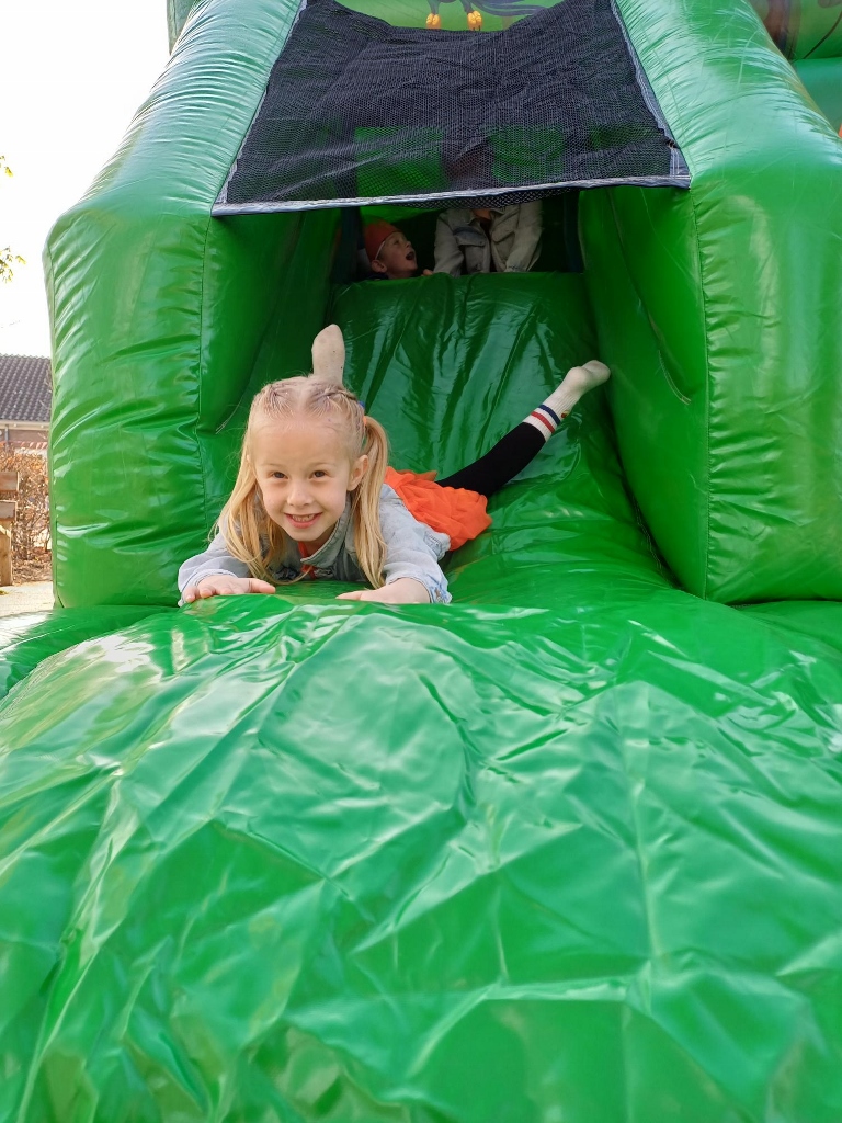 In de ochtend stond de onderbouw centraal. Op het plein werden traditionele Hollandse spelletjes gespeeld, zoals klos lopen, 4 op een rij XXL en tunnelkruipen. Het springkussen bleek opnieuw een absolute trekpleister: daar werd fanatiek gesprongen, gelachen en energie kwijtgeraakt.