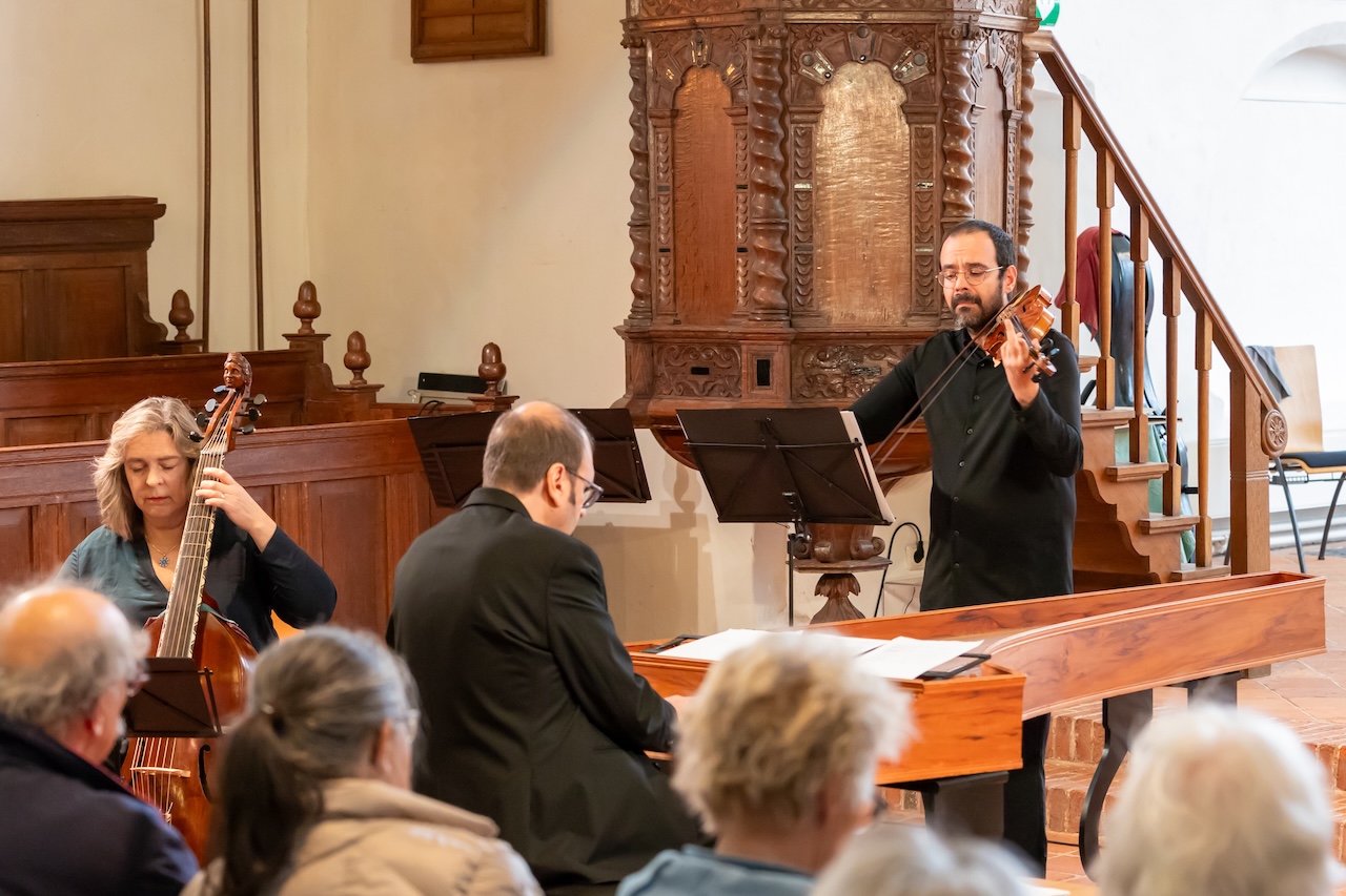 Kerkconcerten Vries trakteerde op vroeg-Italiaanse barok, gebracht door het Ensemble Reïna Lupa dat het programma ‘Monteverdiana’ presenteerde. Veel Monteverdi dus. Het ensemble met de bezetting van twee sopranen, twee violen, viola da gamba en klavecimbel (door ziekte miste helaas de theorbe, een soort luit), stond onder leiding van Spanjaard Enrique López-Cortón, die sinds 1999 in Nederland woont en werkt.