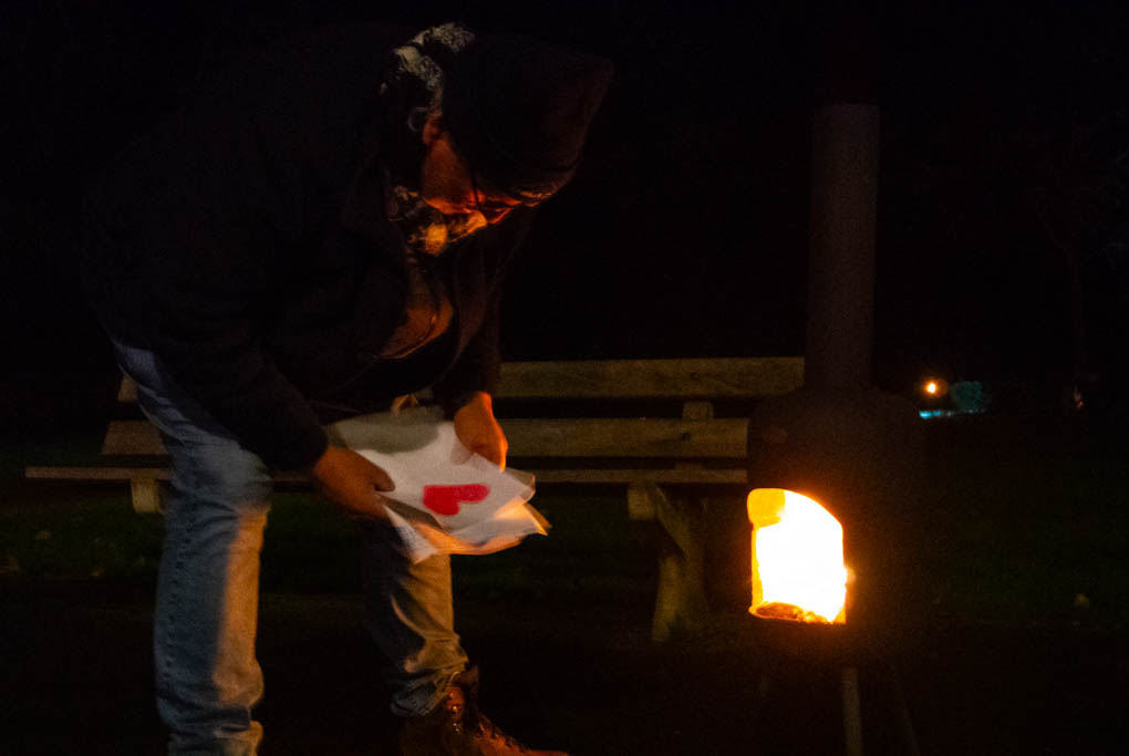 Om 18.30 werd er hemelpost verzonden. Dat was dit jaar voor het eerst. Het hele jaar staat er een brievenbus op de begraafplaats waarin iedereen zijn hemelpost kan doen. Een brief met dingen die je nog wilde vertellen aan je dierbare of bijvoorbeeld een mooie tekening of kaart. De flinke stapel die uit de brievenbus kwam werd via een haard verzonden naar de hemel.