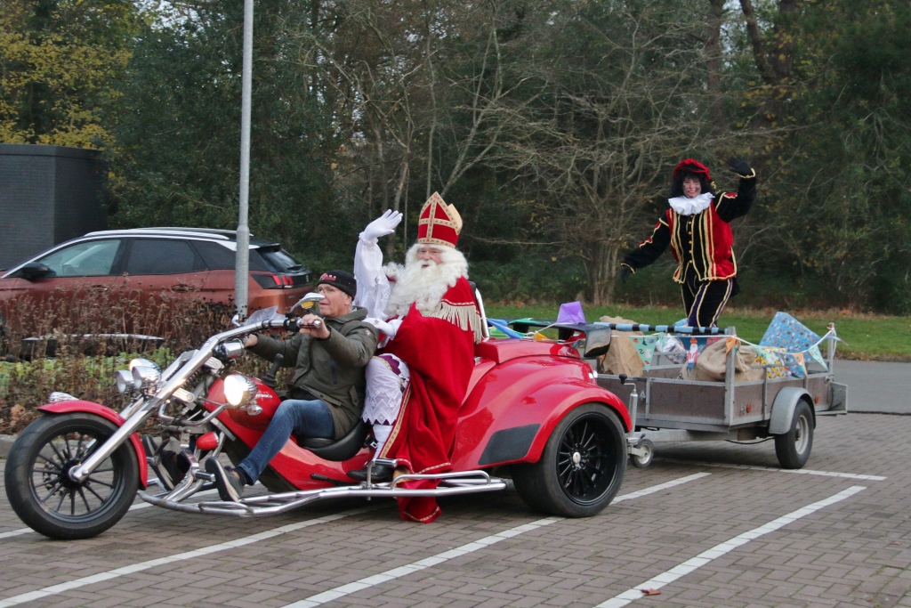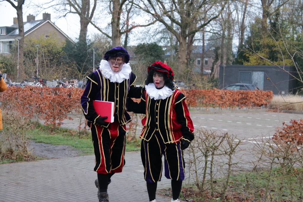Vanmorgen op de De Vijverstee was het weer een vrolijke boel. Op het plein werden verschillende Sinterklaasliedjes en gehore gebracht. De leerlingen keken allemaal gespannen naar de straten, hoe zal Sintklaas vandaag aankomen op school. Na een paar keer roepen, kwam Sinterklaas aan gescheurd met een trike. Dat ging zo hard dat de hoofdpiet van het karretje was gevallen. Sinterklaas was een beetje boos op de chauffeur van de Trike. De andere piet heeft de hoofd piet opgehaald. Hoofdpiet had slechts een pijnlijke voet, gelukkig maar want er is vandaag natuurlijk nog volop werk te doen. Na van de eerste schrik te zijn bekomen, was er opnieuw onrust. De hoofdpiet had zich vanmorgen verslapen en niet gekeken welke broek piet aan deed. Met als gevolg dat de pieten de verkeerde kleur broeken aan hadden.