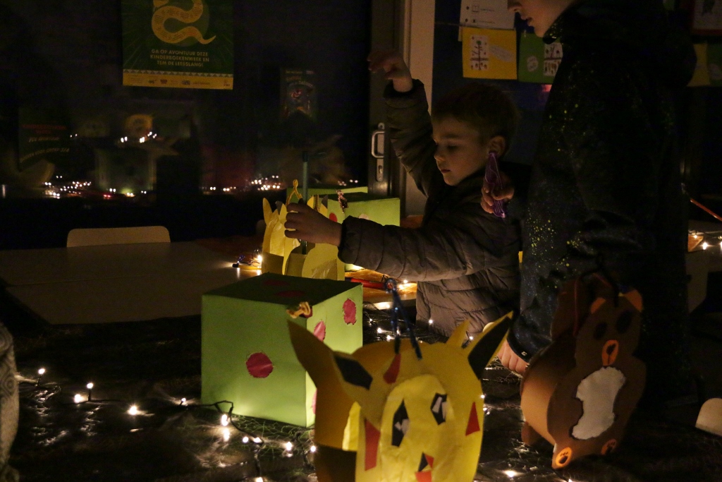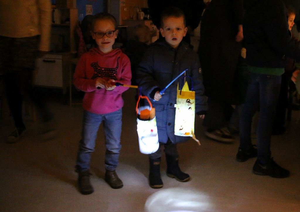 Gisteren, aan het einde van de middag, was het gezellig druk in de O.B.S. De Vijverstee. Ouders en grootouders kwamen allemaal kijken naar de prachtige lampions.