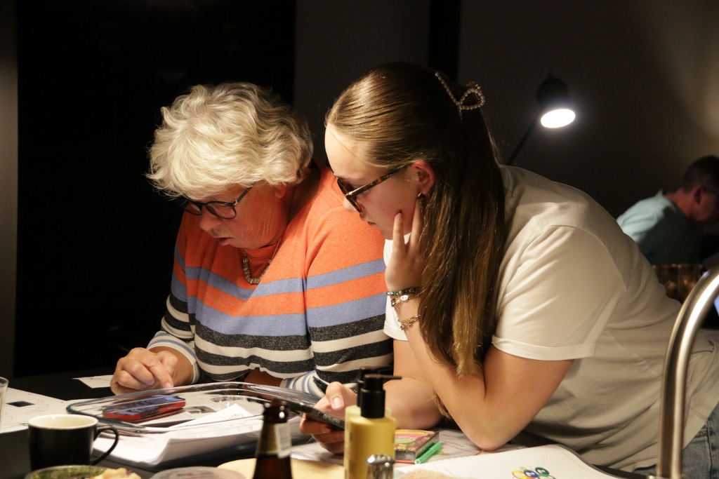 Gisteravond vond alweer de 6e Vriezer Dorpsquiz plaats, dit keer met maar liefst 34 teams. Om kwart voor zeven verzamelden de teamcaptains zich in de grote zaal van Grand Café Onder de Linden. Daarvandaan konden zij, na een kort welkom en nog een paar helpende opmerkingen van het organiserende Volksvermaken Vries, naar hun team terug om het 83 pagina’s dikke quizboekje te gaan verwerken. De organisatie had zijn uiterste best gedaan om de vragen zo moeilijk mogelijk opzoekbaar te maken. Het blijft een technologische strijd tussen bedenker en beantwoorder van de vragen, die voorlopig nog niet is uitgewoed. Vorig jaar vroegen de teams om wat meer opdrachten waarvoor ze het dorp in moesten. Deze wens in in deze editie zeker vervuld. Jammer was het dat de weergoden niet meehielpen, er waren leden van verschillende teams die meerdere keren een nat pak opliepen. Dat werd mede veroorzaakt doordat de teams vijf keer op een, door een pluscode, aangegeven locatie steeds de antwoorden op 5 vragen moesten inleveren. Deze vragen hadden ze via de what’s app ontvangen en moesten binnen 10 minuten na ontvangst worden ingeleverd. Ook bij de oproepjes om in het Grand Café opdrachten zoals ramen (schatten van gewicht en afmetingen) en ‘Herinnert u zich deze nog’ (de dorpsquiz-vertaling van de Hitster) te komen vervullen, moesten de deelnemers een beetje geluk hebben. Sommigen kwamen in een klaterende regenbui naar het café, anderen hadden geen enkele last van regen. Er is vreselijk hard gewerkt in de teams om alles op tijd in te vullen, zodat het quizboekje om 23.00 uur weer ingeleverd kon worden. En niet alleen het quizboekje, werd ingeleverd. Ook de bijeen te verzamelen attributen werden ter plekke gecheckt op aanwezigheid in de quiztas, die dit jaar beschikbaar was gesteld door de Welkoop, waarvoor hartelijk dank! Ook moest het vereiste punnikwerkje ingeleverd worden, net als het scrabblebord met Drentse woorden. Op 24 oktober a.s. is de feestelijke prijsuitreiking. Dan wordt bekend gemaakt wie deze zesde editie van de Vriezer Dorpsquiz heeft gewonnen. Eerst heeft de organisatie nog een megaklus te verwerken: 34 quizboekjes nakijken!