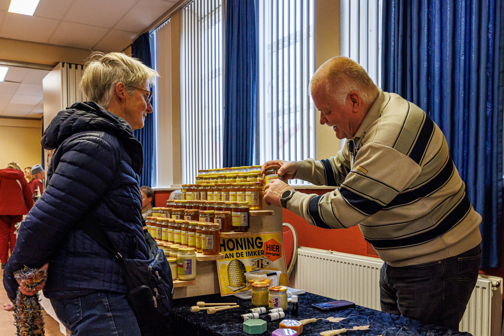 Het aanbod aan creatieve producten en de inmiddels vaste stand met honing van de imker was ook dit keer weer heel divers en goed ‘gevuld’.
